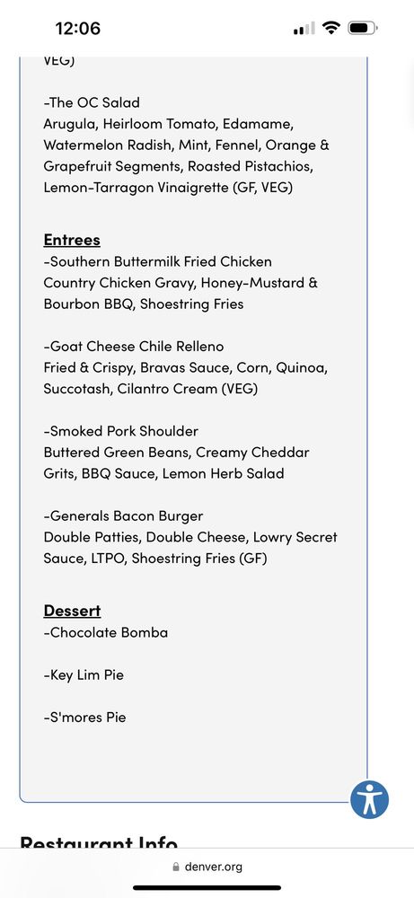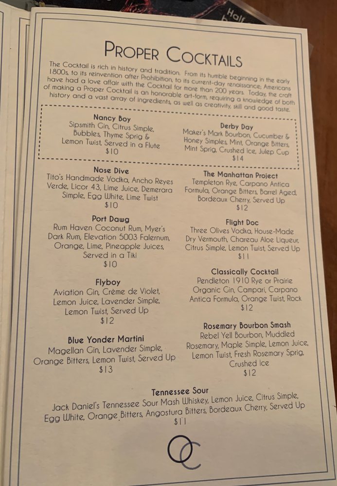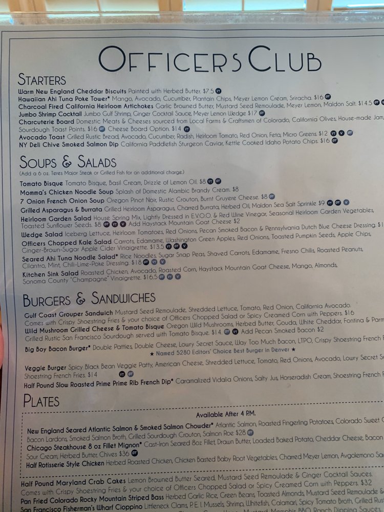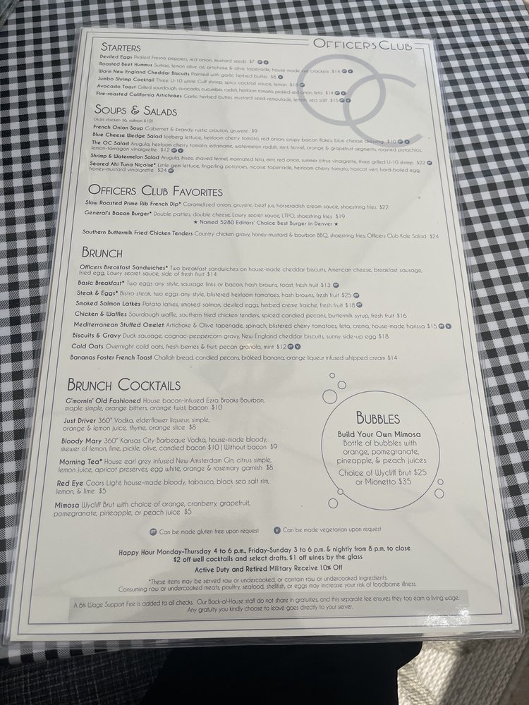 Officers Club Lowry Menu